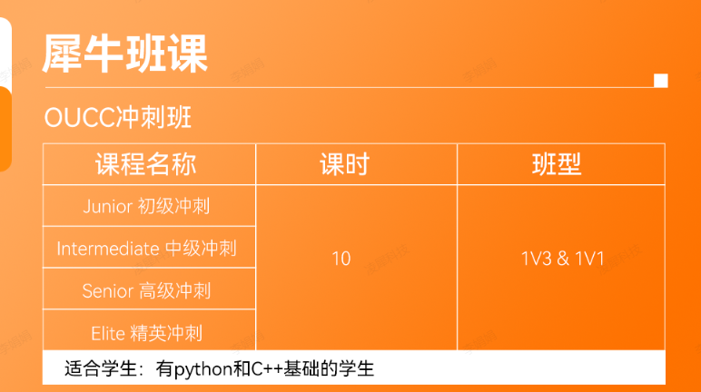 OUCC计算机冲刺班适合有一定编程基础的学生(0基础可以学习后参加2025年竞赛),一般针对8年级以上的学生,课程内容包含递归,模拟等算法以及真题训练,培养学生数学逻辑思维和计算思维,轻松拿下与USACO铜升银同等级别的计算机竞赛。