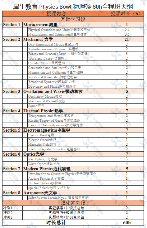 犀牛物理竞赛辅导课程由物理竞赛负责人董老师带队,授课师资均为剑桥、哈尔滨工业大学等师资授课,物理竞赛功底扎实,能够带领学生高效备考,可中英双语/全英教学。