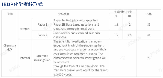 IB化学涵盖了从分子化学、能量学到周期性、化学动力学和平衡的多个主题。IB化学属于IB六类学科组中的第四类-实验科学,分为SL和HL。SL的知识点由Core和Options组成,HL的知识点由Core,AHL和Options组成。SL一般需要150课时,而HL需要240课时的学习。考核分数由外部评价和内部评价组成。IB化学课程中占比20%的实践评估环节,由学校教师评分、IBO审核,是衡量学生实验能力的核心指标。