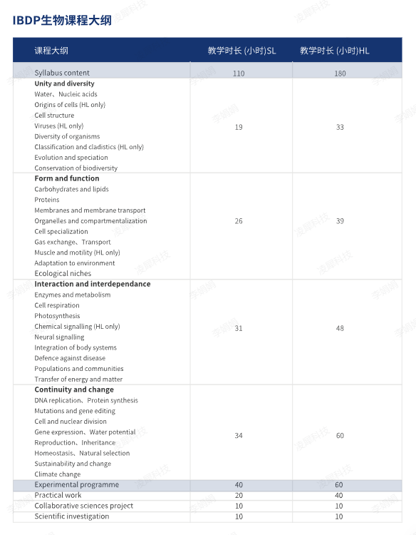 IBDP的生物学科旨在帮助学生建立对生物学原理的广泛和整体的理解。在IBDP的生物课程中,四个生物学概念的思维逻辑会贯穿学习的始终:结构和功能(structure and function)相适应的思维,普遍性和多样性(universality versus diversity)共存的思维,系统内的平衡(equilibrium within systems)思维和进化(evolution)的思维。