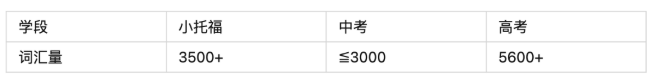 以下是小托福、中考、高考词汇量之间的对比: