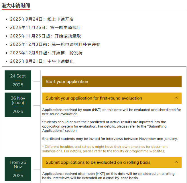 香港大学本科申请时间线正式发布将于9月24日开放本科网申系统,意味着准备周期缩短,录取节奏加快,早轮竞争可能更激烈。此外,港大也更新26/27学年本科学费,非本地生学费又双叒涨了,去年21.8万HKD封顶变起步!新的申请季即将启动,各位同学一定要提前了解申请重点不打无准备之仗!