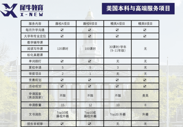藤校A/藤校B项目:适合最终目标比较高,且希望更多高端服务的学生,且一般年龄较低