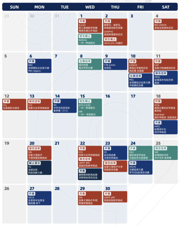 2026-03-26 10:28四月即将到来,月度国际竞赛月历已更新。本月有哪些值得参与的高含金量学术赛事?无论你主攻数学、物理、生物、工程、材料、化学...