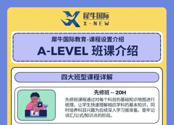 2026-03-30 11:52犀牛国际教育在A-Level培训领域深耕多年,针对有脱产学习需求的学生,量身打造「A-Level脱产全日制1V1定制化服务」。该服务涵盖...
