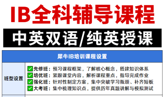 5月IB大考临近了,IB课程有6大学科+3大核心(TOK/EE/CAS)的复合考核体系,对于国际生的挑战可不小,犀牛针对IB大考的学生设置了大...