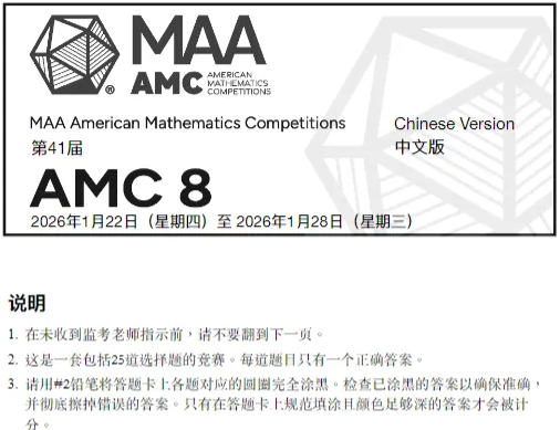 2026-03-16 16:352026年AMC8竞赛已经结束了,不少家长焦虑询问孩子AMC8没考好,首战失败到底要不要重考?文末分享2026年AMC8真题及答案解析,可领...