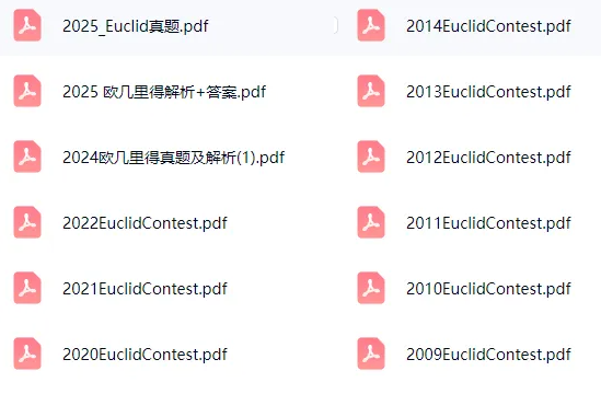 2026年欧几里得竞赛考试将于3月考试,考前紧张备考进行中。ZOE老师汇总了欧几里得数学竞赛2009-2025年真题及详细答案解析。资料...