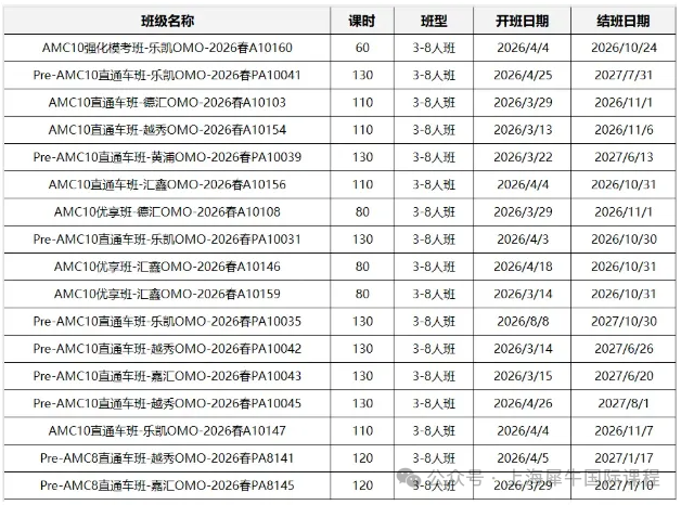 AMC8/10/12 滚动开班中!