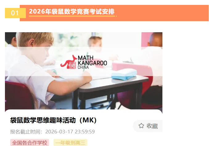 2026-03-03 09:522026年袋鼠数学竞赛怎么报名?试卷语言是中文还是英文?2026年袋鼠数学竞赛报名报考时间2026年袋鼠数学竞赛报名即日起-2026年3月17...