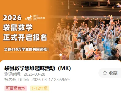 备受期待的2026年袋鼠数学思维趣味活动报名已正式启动!ZOE老师为大家整理了袋鼠竞赛的考试时间、报名方式、备考真题、考前注意...