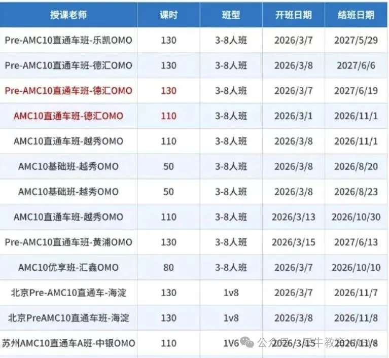 2026-03-03 10:17AMC10竞赛是高中生数学能力试金石,也是上海领科学生爬藤申G5重要筹码。AMC10竞赛参赛选手年级逐渐突破下限,6-10年级学生范围扩大大,低年级学生备考AMC10竞赛难免吃力,因此上海犀牛开设Pre AMC10培训课程,从小白零基础到冲奖一步到位。...