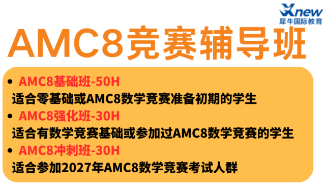 2026-03-23 09:58AMC8 是由美国数学协会 MAA 推出的入门级国际数学竞赛,面向全球 8 年级及以下学生,也是锻炼数学思维、打好竞赛基础的理想选择...