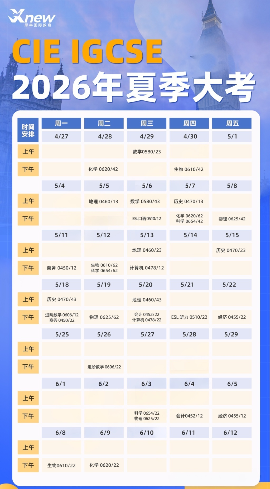 2026-03-11 10:502026年夏季IGCSE大考时间一览!文末附IGCSE全科辅导课程表!距离2025年IGCSE夏季大考仅剩百余天,现在正是实现“逆袭突破”的关键...