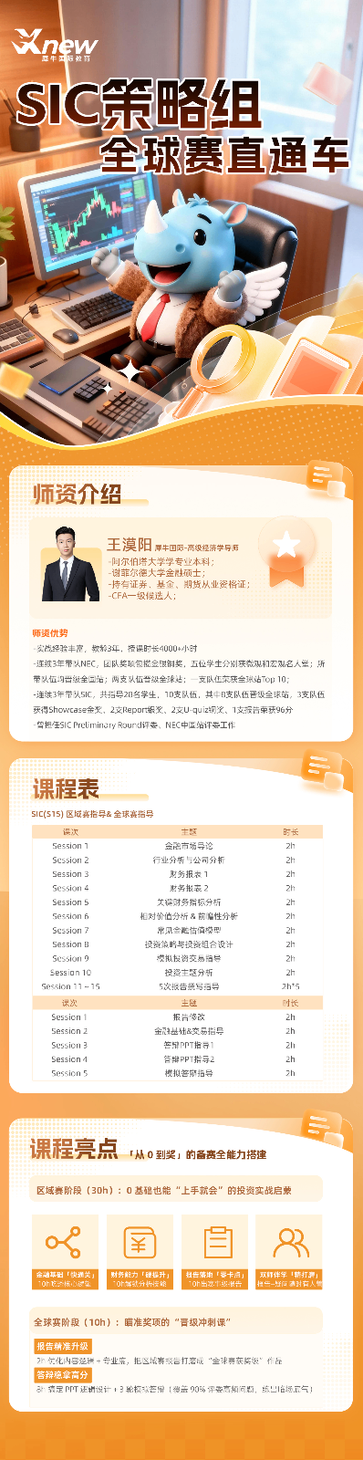 SIC(Student Innovation Challenge)中学生投资挑战赛是初次参加商赛学生的商赛首选,相比顶级赛事WGHS沃顿投资挑战难度没有那么...