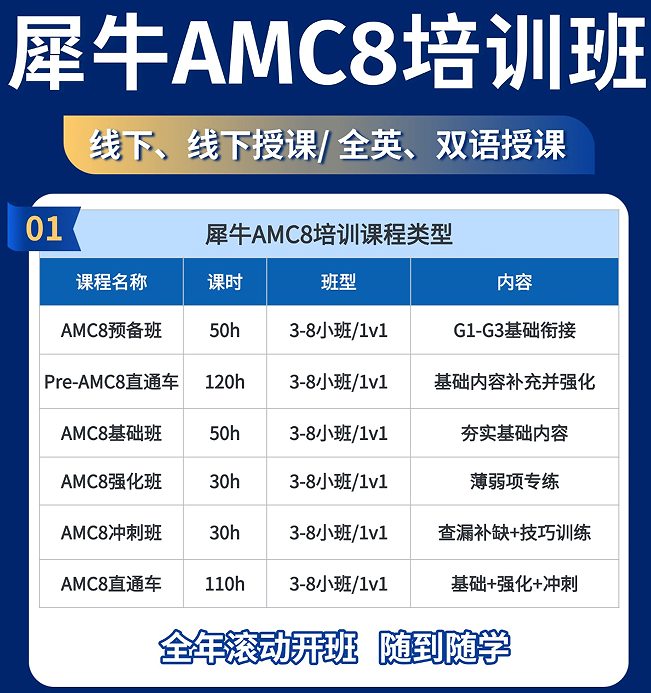 犀牛AMC8培训课程始终坚持:先诊断,后分班;分阶段,再进阶。