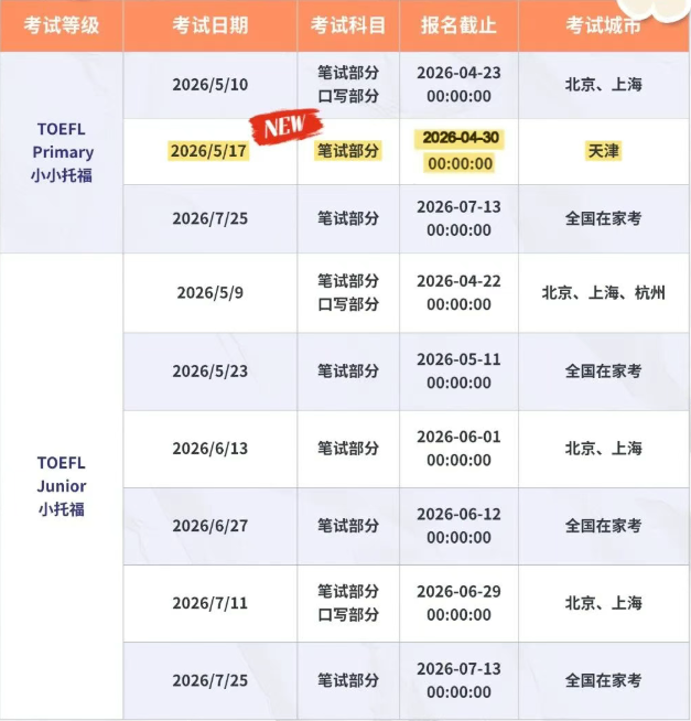 ETS官方发布小托福2026下半年最新考试计划,多个考试日期,随报随考!提前做好规划,锁定心仪考位,一举拿下好成绩!