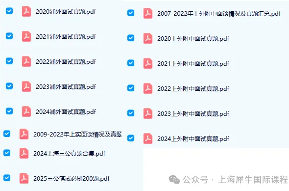 犀牛ZOE老师整理了:2025上海小升初三公面谈+机考+笔试题库,包含近10年上实/上外/浦外面谈概况+笔试真题+机考题库+8分钟口答口奥+面试训练等等,在文末领取!