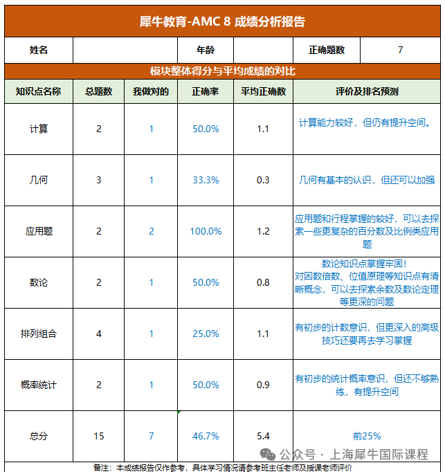 犀牛AMC8培训课程入班前先测试,匹配和水平一致的学员一同进步; 最大限度上避免孩子出现入班后跟不上的情况。