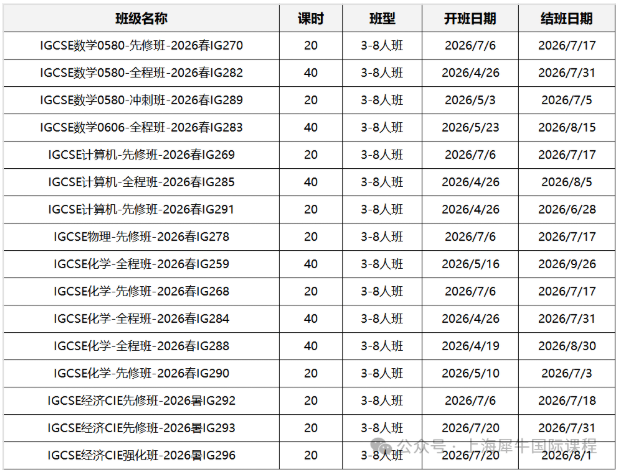 IGCSE学科先修班(20课时):提前接触IG核心内容,建立知识框架,开学即排先。