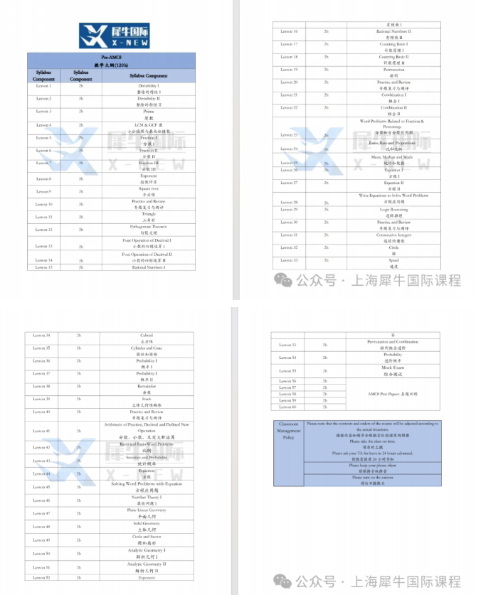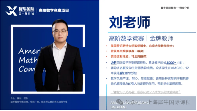 犀牛AMC8授课老师都是清北复交、海外名校毕业的,人均5年以上AMC8辅导经验,长期深耕AMC8及国际数学竞赛教学领域,熟悉考试命题规律和学生学习需求,知道零基础孩子短板在哪,不会盲目讲课,针对性极强。