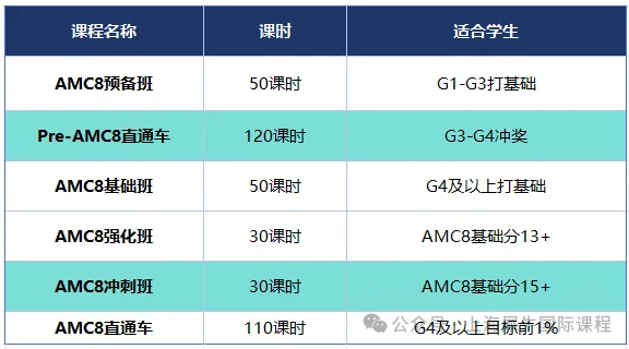 针对26年考AMC8不同分数的孩子,犀牛教育针对AMC8数学竞赛开设PreAMC8课程和AMC8课程,包括预备班、基础班、强化班、冲刺班等不同班型,根据孩子基础匹配合适的班型。
