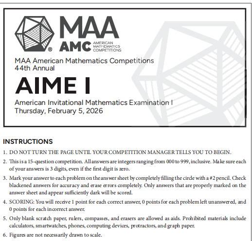 2026年美国数学邀请赛AIME第一场比赛于今日(2月6日)下午结束。