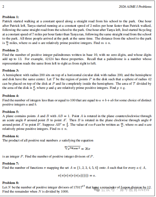 2026年AIME竞赛I卷真题解析,电子版已经给大家整理好啦!