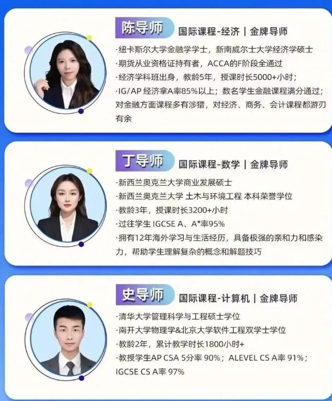 犀牛AP辅导汇聚全球顶尖师资,海内外名校师资毕业于牛津、剑桥、帝国理工等世界名校,教学经验丰富,能帮助学生快速适应AP课程的学习节奏。