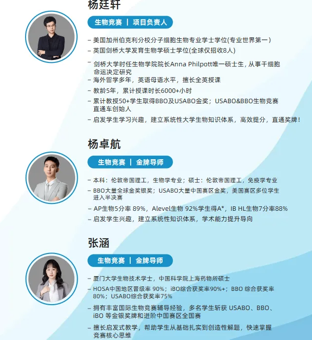 USABO/BBO生物高联课程师资