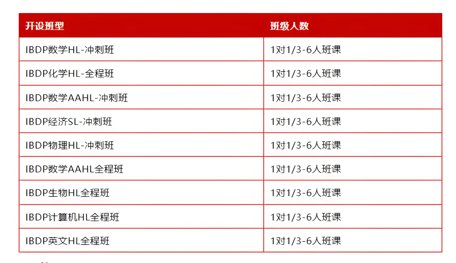 IB Business Management、IB心理学(Psychology)、IB地理(Geography)、IB物理(Physics)、IB化学(Chemistry)、IB生物(Biology)、IB数学AA、IB,Al包括HL和SL不同难度级别