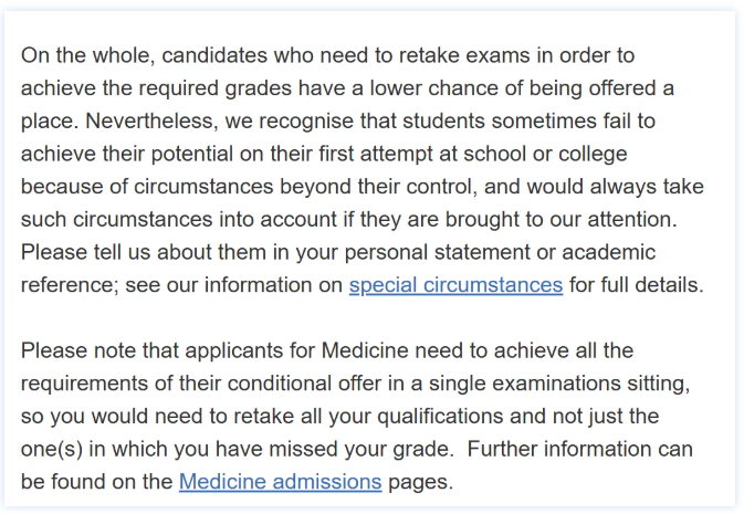 牛津大学非常直白——那些需要通过重考才能达到所需成绩的申请者,获得录取的几率相对较低。