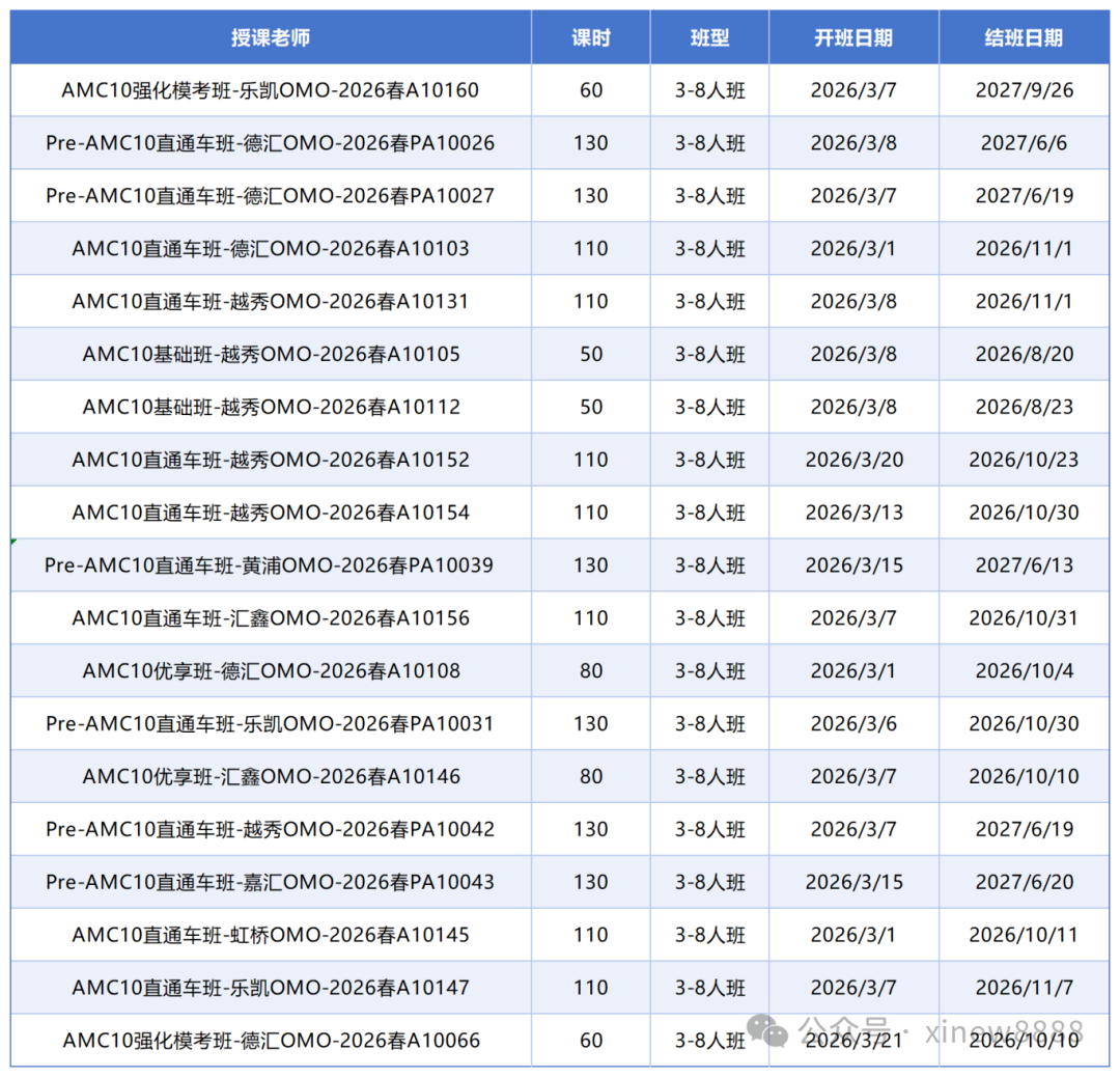 新赛季AMC10竞赛备考已经开始,犀牛AMC10培训课程上线,3-8人的小班,多个时间段可选,名额有限,抓紧时间占位~