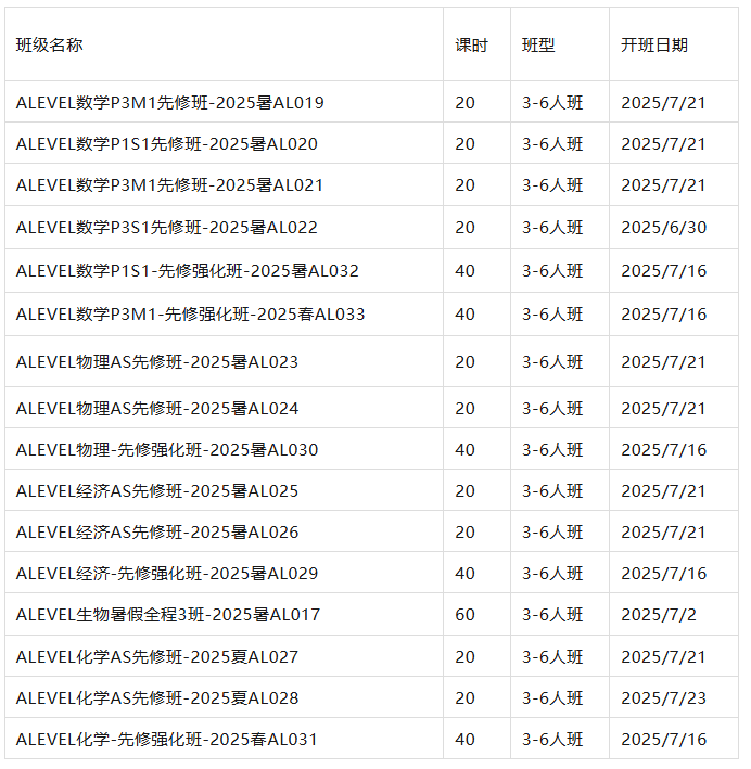【完整版】Alevel课程一本通!Alevel暑期课程火热报名中!