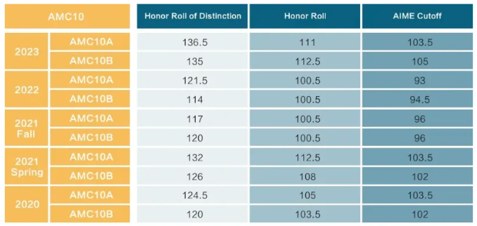 2023AMC10A卷需要达到103.5分,B卷需要达到105分,而拿到全球前1%,AMC10A卷136.51分,B卷135分,AB卷的分数差别不大,相较于去年分数线大涨了10分左右,备考24年11月的同学建议同学们能尽早备赛。