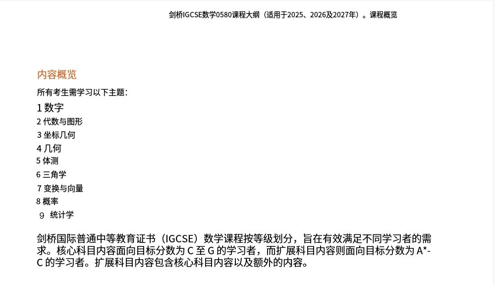 一、IGCSE数学考试重点