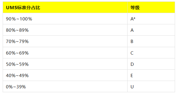 那么UMS和各个等级之间的分数是如何换算的呢?UMS有统一的换算标准。