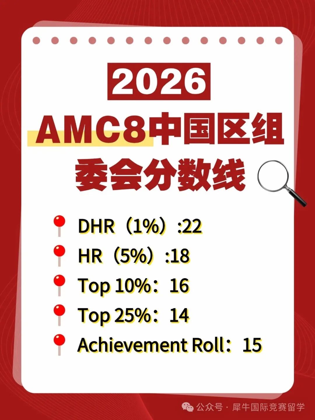 我们可以清晰看到,2026 年 AMC8 各奖项分数线创下近年新高: