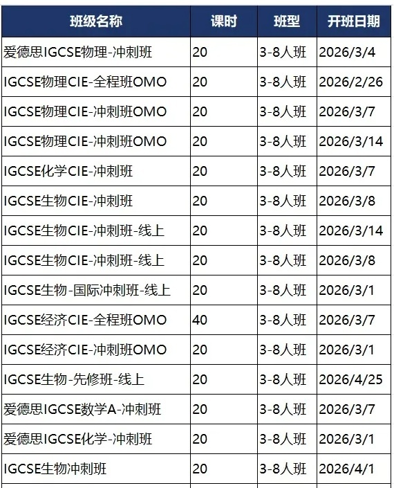 一、IGCSE开学季新班开班安排