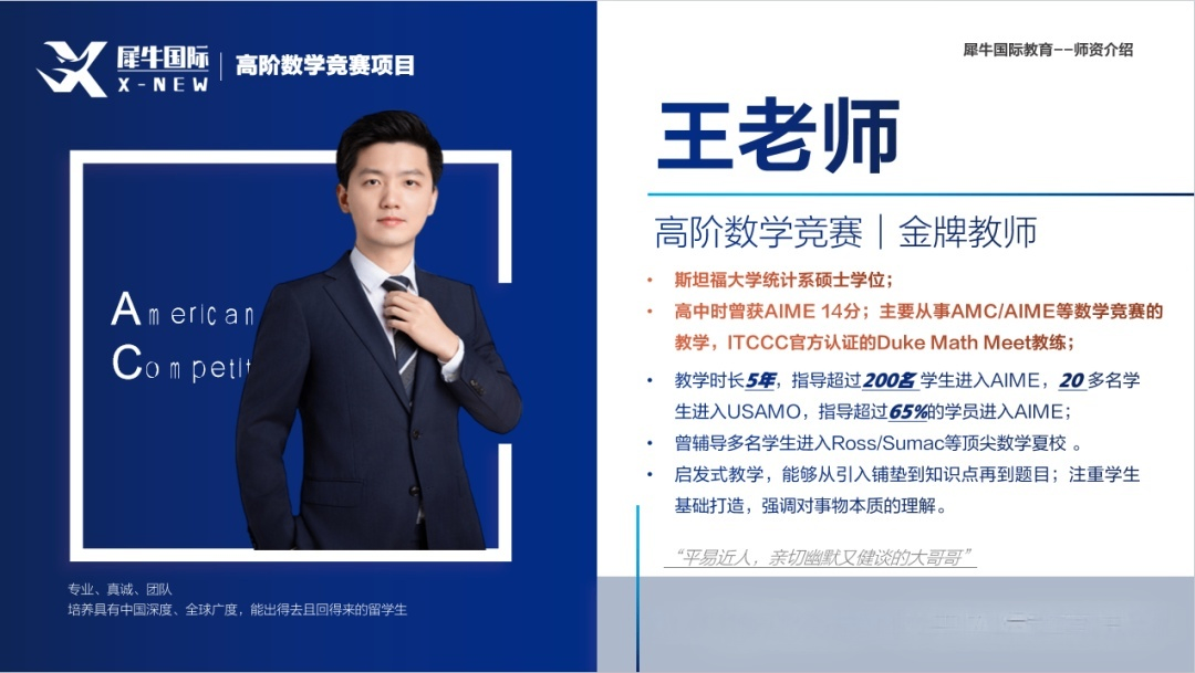 主要从事AMC/AIME等数学竞赛的教学,ITCCC官方认证的Duke Math Meet教练;