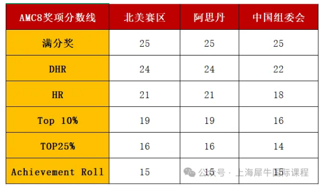 2026年AMC8分数线已全面公布,北美赛区、阿思丹/中国组委会AMC8获奖分数线分数不同,中国组委会单独划线!