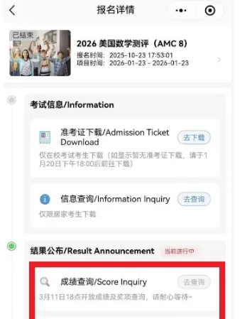【AMC8电子版证书】:预计于2026年3月下旬开通下载