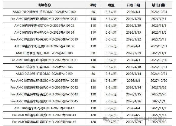北京犀牛线下校区位于海淀中关村、朝阳国贸、顺义祥云小镇,2026年AMC10培训课程已经开班了,有3-8人小班和1v1定制课程,中英双语可选,线上直播可回放,全年滚动开班,寒暑假加课,三师伴学(任课老师 + 班主任 + 助教),AMC10前5%/ 前1%,AIME晋级有保障!