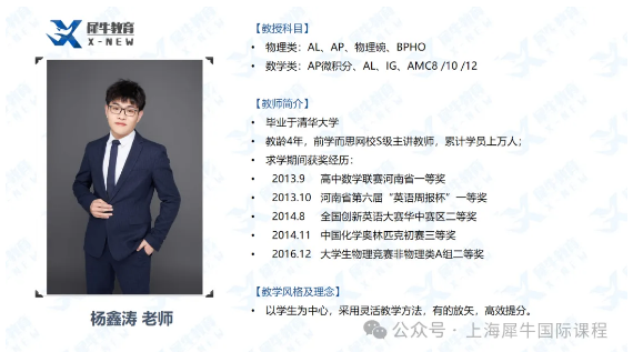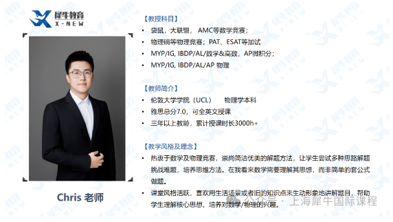 伦敦大学学院(UCL)物理学本科,雅思总分7.0.可全英文授课三年以上教龄,累计授课时长3000h+