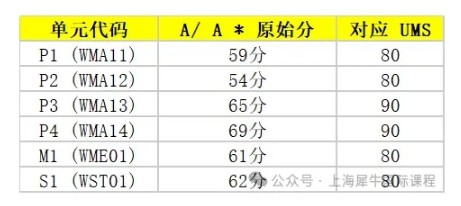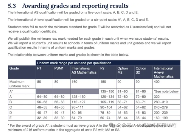 我们看到整个A-level数学的标准分为400分,A为320即80%UMS,而它的A*则要求整体成绩达到A后,P2+M2或P2+S2最少拿到216分,也就是A2UMS的90%!