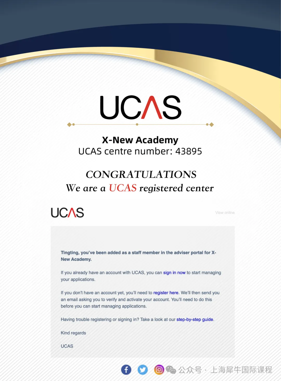 犀牛已获得英国UCAS认证,可为学生提供预估分、推荐信等