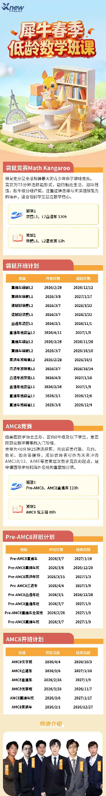 对于目标明确、想冲刺顶尖成绩的家庭,专业辅导能让备考事半功倍。犀牛国际的 AMC8 课程体系,为不同阶段的孩子提供了精准的解决方案: