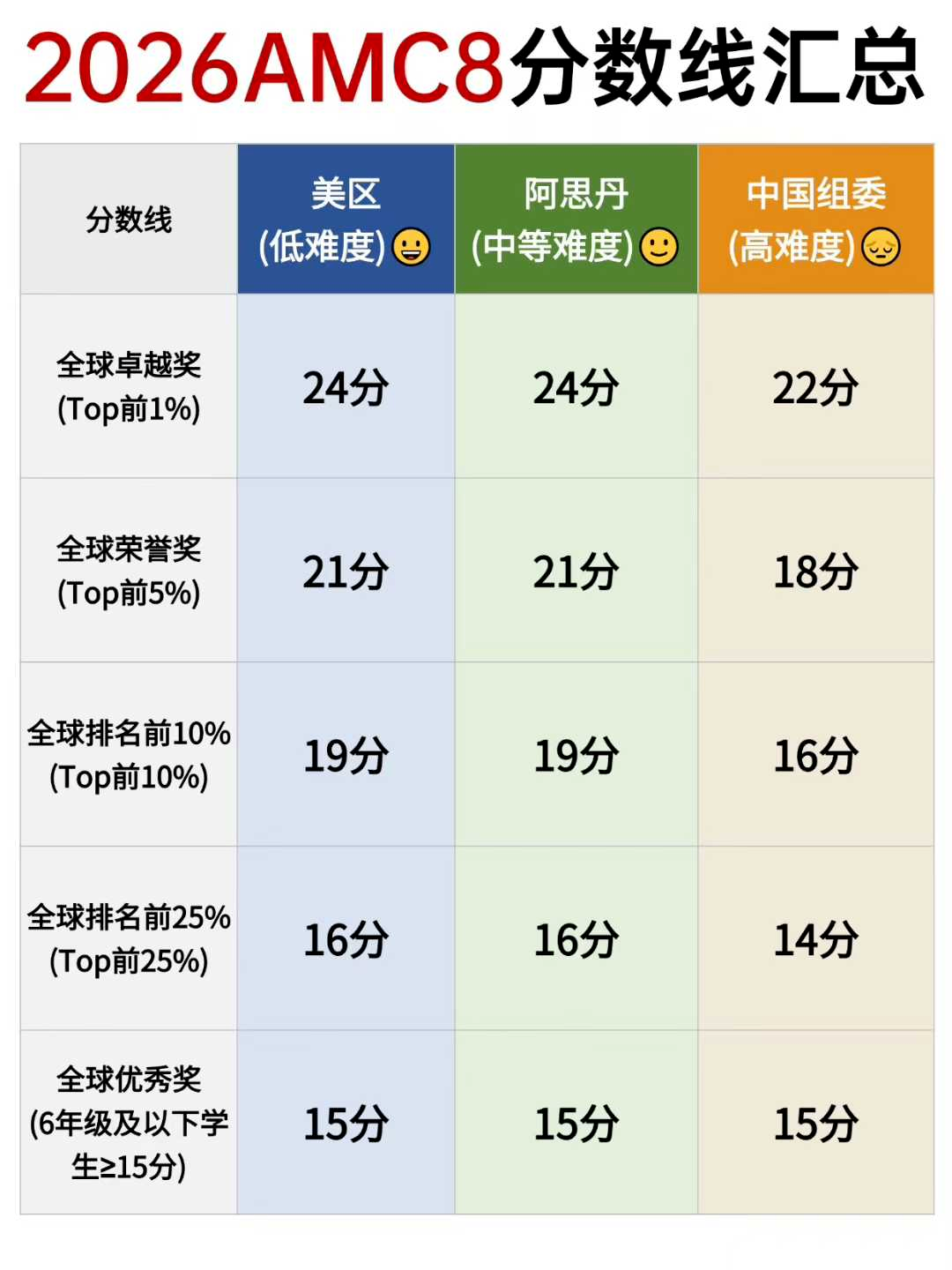 AMC8中国区分数线单独划分,这不是简单的“多一条线”,而是: