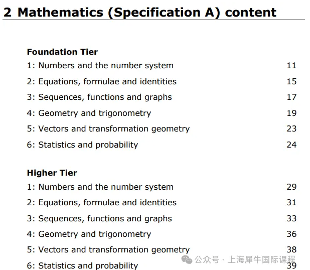 数学A分为基础(Foundation)和进阶(Higher)两个级别。