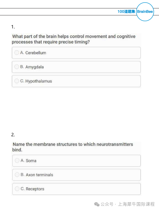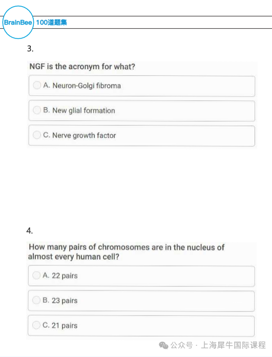 2026年BrainBee竞赛将于2026年3月21日开赛,距离开考时间也没有多久了,在考前,同学们刷一些题目也是十分必要的。给大家整理了BrainBee竞赛100道模拟题,帮助同学们高效冲刺26年Brainbee考试!